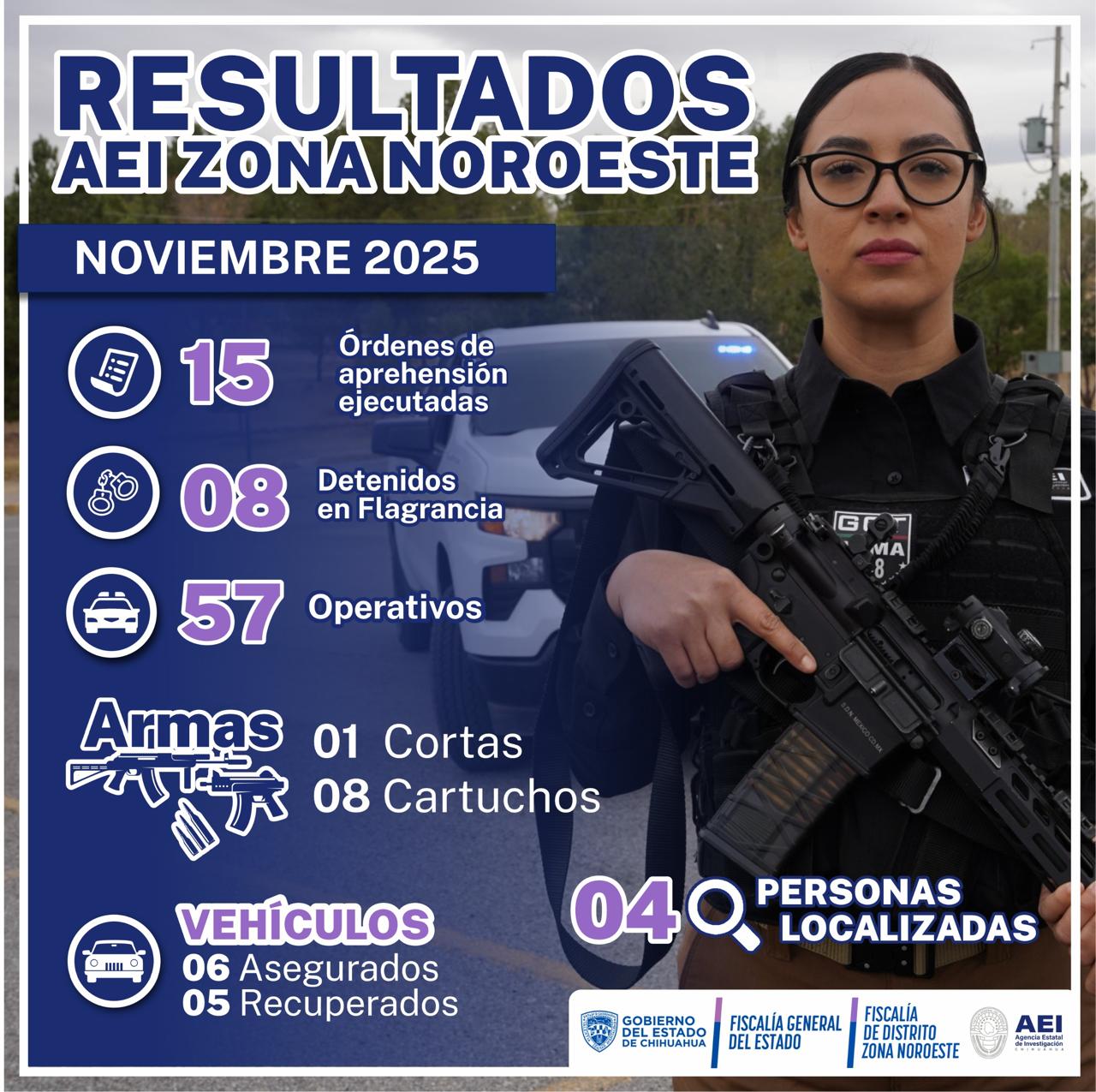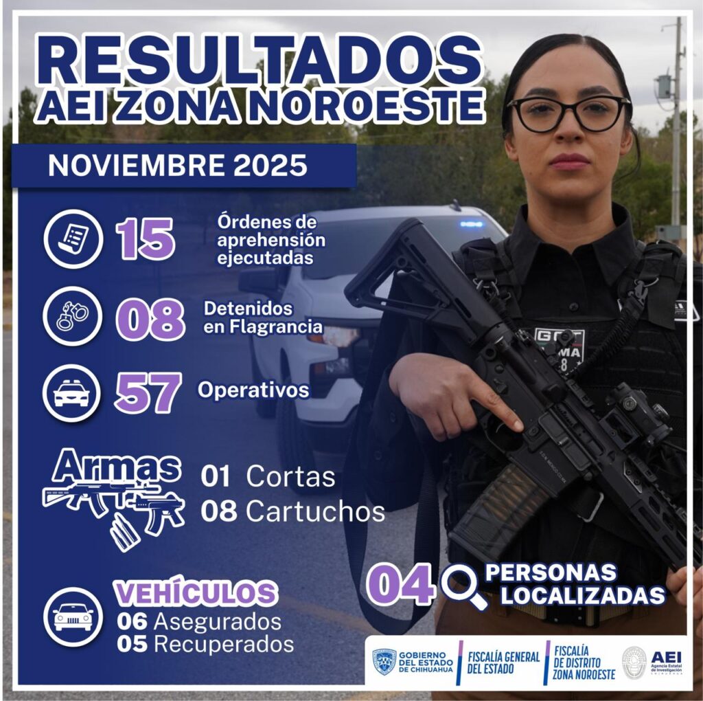 Dentro de las acciones para combatir los delitos, la Agencia Estatal de Investigación en la Zona Noroeste del estado, dio a conocer los resultados alcanzados durante el mes de noviembre.