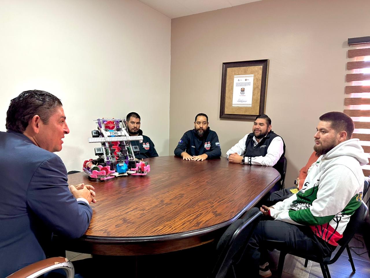 La mañana de este lunes, maestros y estudiantes que integranel club de robótica de la Universidad Tecnológica de Camargo, unidad Meoqui, visitaron al presidente municipal José Dolores Andujo Gómez para mostrarle sus logros y solicitar el apoyo para continuar su camino rumbo al éxito.