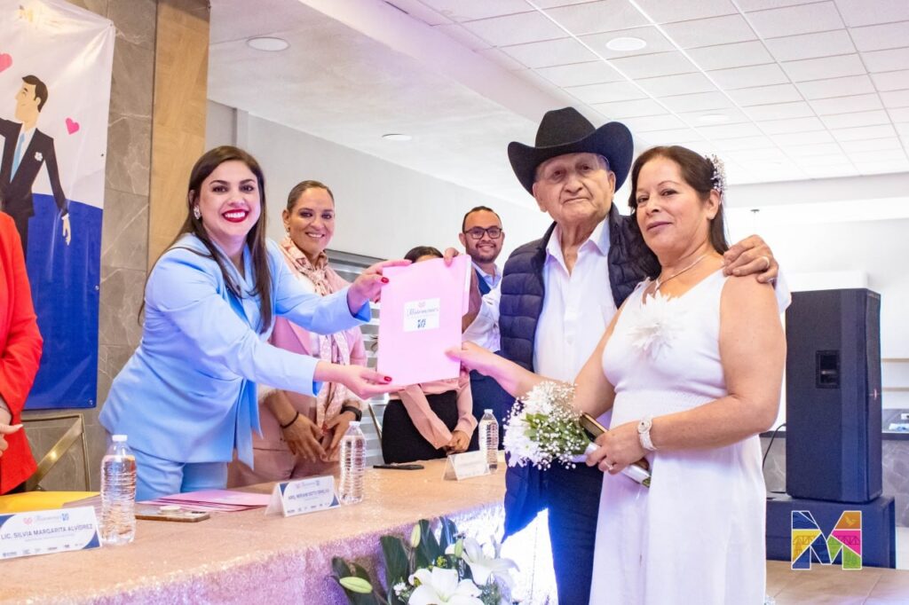 La alcaldesa Miriam Soto destacó que el programa, impulsado por el Gobierno del Estado a través de la Dirección General del Registro Civil, permite a las parejas formalizar su unión de manera gratuita y accesible. Señaló que durante el evento se realizó una rifa de regalos y que, por primera vez, todas las parejas recibieron un obsequio, lo que representa un apoyo importante para quienes comienzan una nueva etapa o para quienes decidieron dar certeza legal a su relación. Asimismo, agradeció a la gobernadora Maru Campos por enviar una cocineta y 27 vales de despensa con valor de 2,500 pesos.